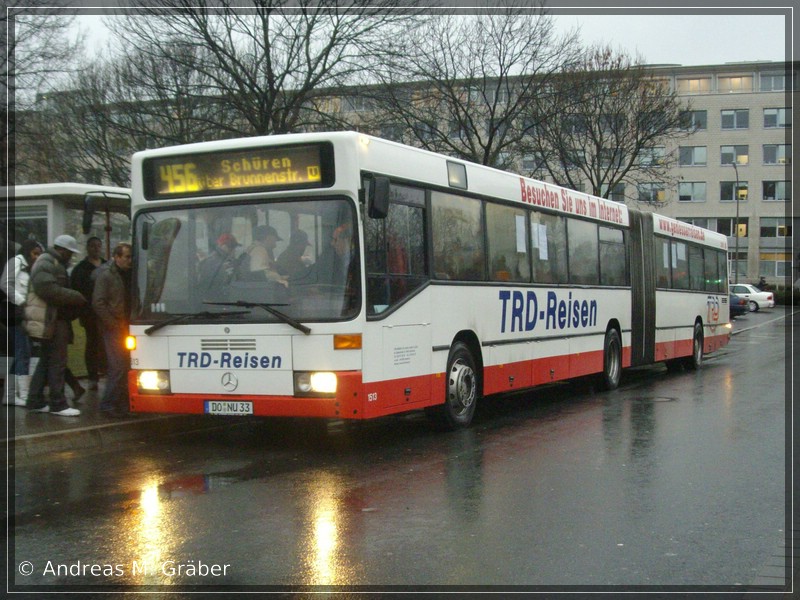 Viele, bei städtischen Unternehmen ausgemusterte Wagen, erwartet ein zweites Leben bei privaten Unternehmen. Einige von ihnen bleiben dabei in der Region. So auch z. B. dieser Mercedes-Benz O 405 GN mit dem Kennzeichen DO-NU 33 von TRD Reisen aus Dortmund, der vorher bei der Essener Verkehrs-AG als KOM 3748 unterwegs war.