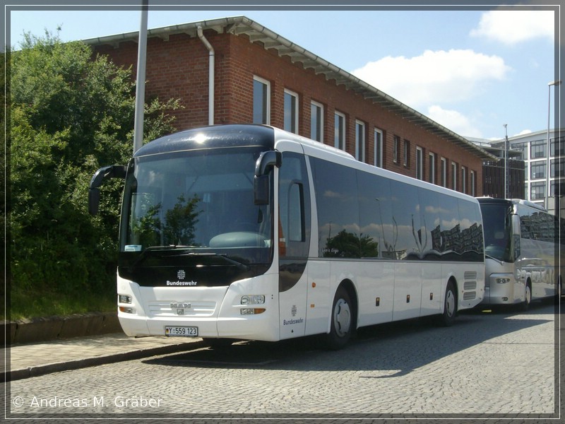 Seit 2002 setzt die Bundeswehr zum Transport ihrer Angestellten und Soldaten Fahrzeuge des BwFuhrparkServices ein, das vom Bund zusammen mit der Deutschen Bahn gegründet wurde. Dabei setzt man vor allem auf Fahrzeuge der Hersteller Irisbus und MAN. Aufgrund des Y im Kennzeichen wird die BwFuhrparkServices auch gerne mal scherzhaft Y-Tours genannt. Hier steht Y 559 123 am 23.05.2009 in Bremen am Speicherhof.