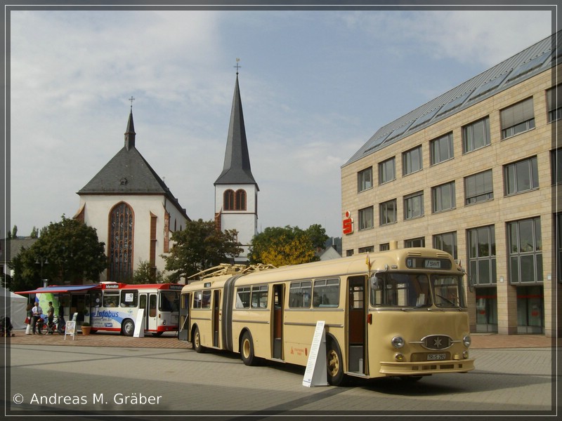 Wir verlassen mal wieder NRW und werfen einen Blick nach Rheinland-Pfalz in die Römerstadt Trier. Dort präsentierte sich Mitte September der SWT-Oldie 28 zusammen mit dem SWT-Infomobil 258 bei strahlendem Sonnenschein auf dem Viehmarkt.